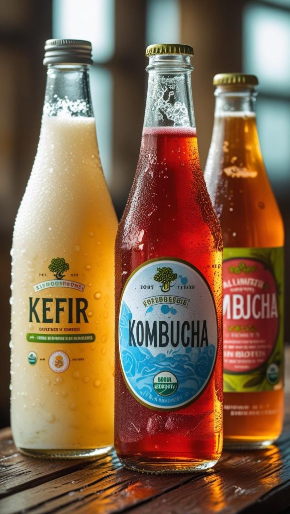 El kéfir, elaborado tradicionalmente a partir de leche o agua, y la kombucha, obtenida a partir del té, son ricos en probióticos, enzimas, ácidos orgánicos y vitaminas del grupo B. Estos compuestos actúan en sinergia para regenerar la flora intestinal, fortalecer el sistema inmunológico y mejorar la digestión. 🌿